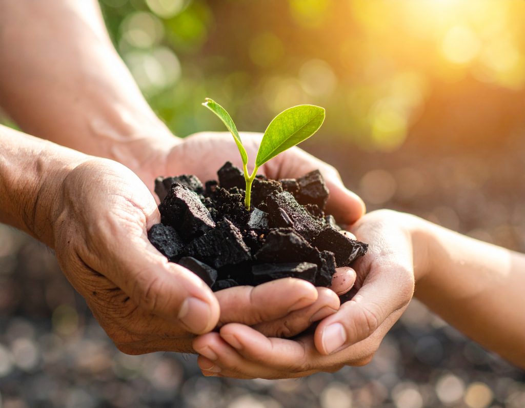 Pflanzenkohle verbessert Böden, speichert Wasser und Nährstoffe und dient als Rohstoff für Industrie und Bauwesen. Ihr Kohlenstoff bleibt über Jahrtausende stabil – ein messbarer Beitrag zum Klimaschutz.